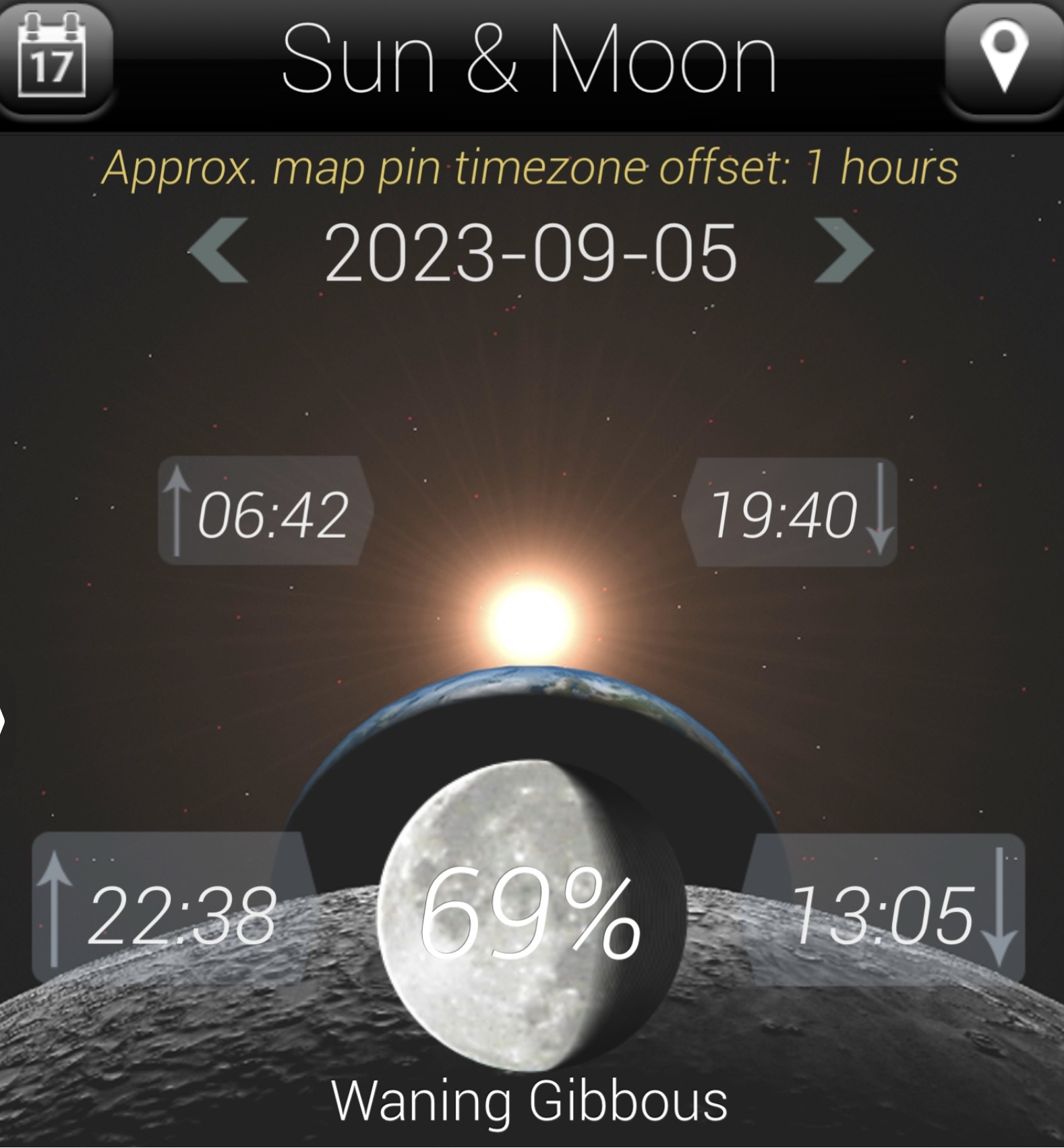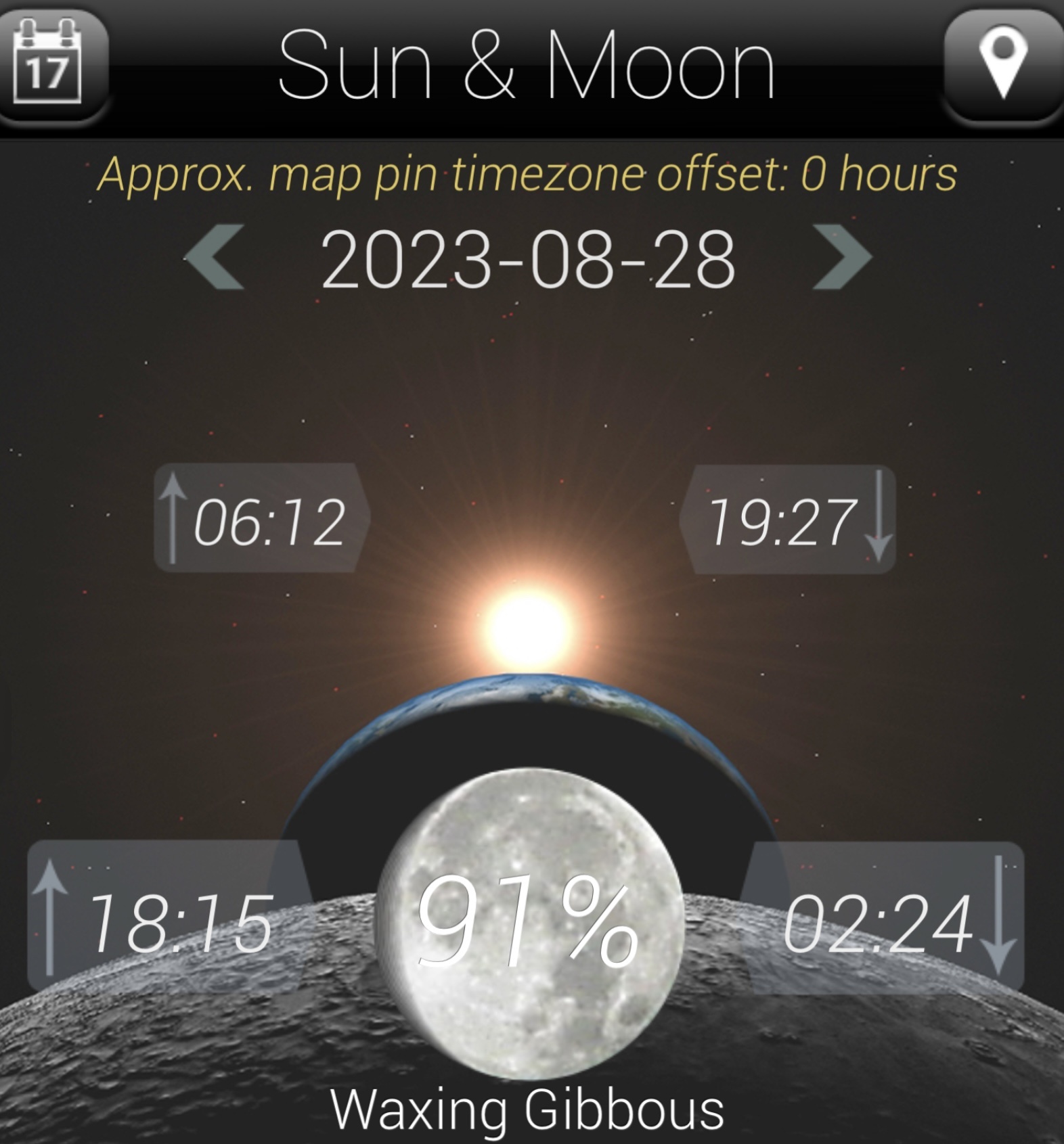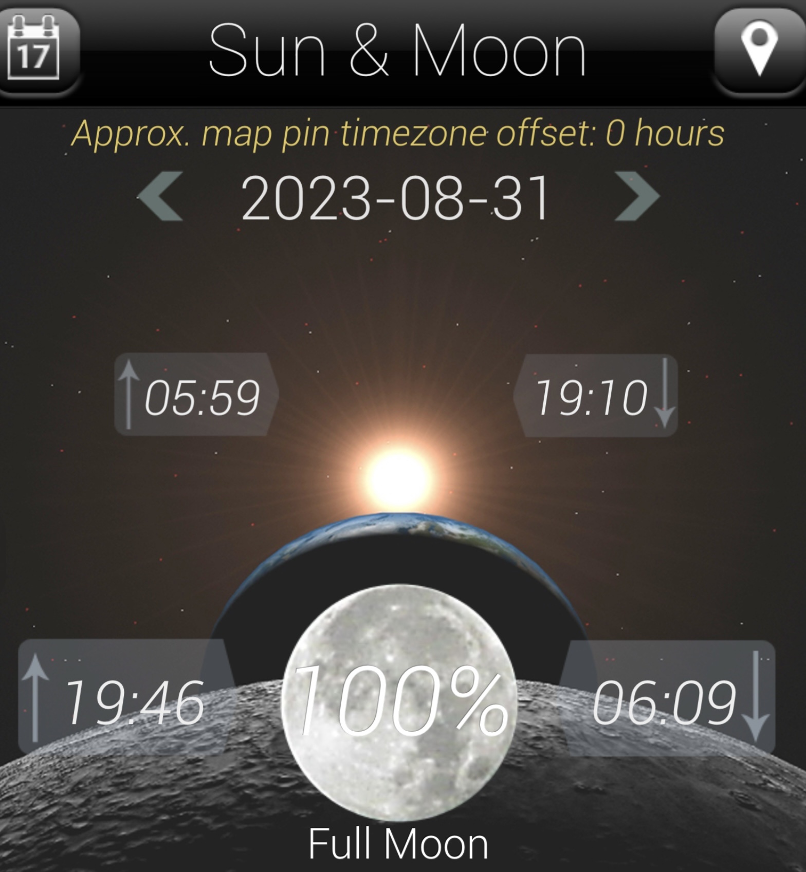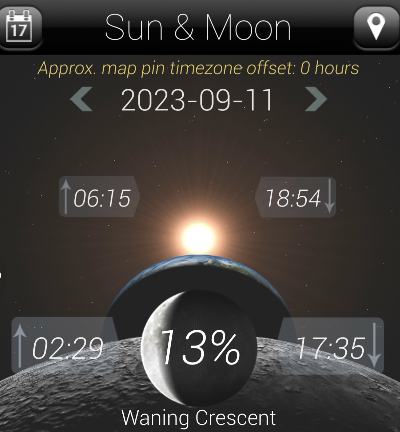 dagindeling : zon en maan op/onder